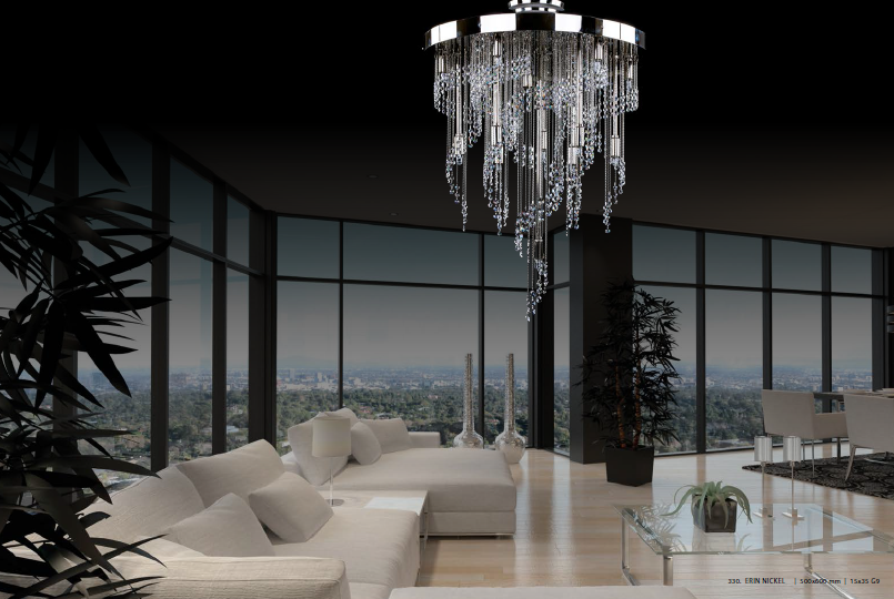客厅一般以一盏大方明亮的吊灯或吸顶灯作为主灯,搭配其他多种辅灯饰,如:壁灯、筒灯、射灯等。就主灯饰而言,如果客厅层高超过3.5m以上的客厅,可选用档次高,规格尺寸稍大一点的吊灯或吸顶灯:若层高在3m左右,宜用中档豪华型吊灯:层高在2.5m以下的,宜用中档装饰性吸顶灯或不用主灯。