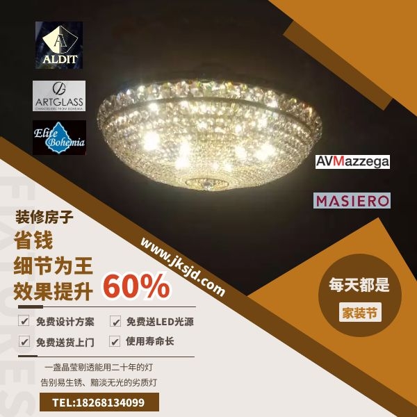 郑先生比较赶时间,而意大利灯到货期长要4~5个月,所以只能在捷克吸顶灯里弥漫选,喜欢水晶的质感,也喜欢金属的花纹,面积有20平,款式要好看,选中的是捷克Lukcy的一款性价比很高的水晶吸顶灯,水晶很多,闪闪发亮的很美,这款吸顶灯不仅是郑先生喜欢,很多客户在吉蒂灯饰家都买过,而且非常喜欢。